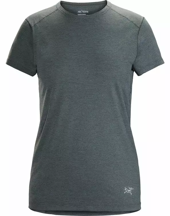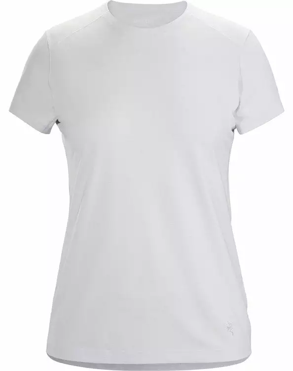 The Arc’Teryx women’s Quadra crew short sleeve is a lightweight, high-performance Bowen™ polyester crew with a cottony hand.