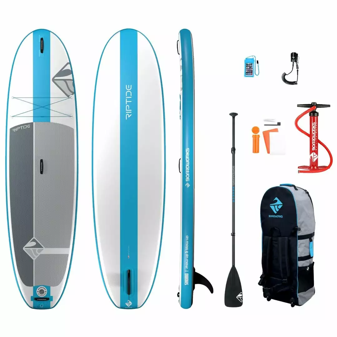 The SHUBU Riptide is a stable and sturdy inflatable paddle board made for the paddler on a budget. The Riptide is a light, versatile SUP that loves to travel and comes with our ultra-comfortable honeycomb heat embossed deck pad, and two neoprene carry handles for easy transport to and from the water. This fun, and travel-friendly recreational inflatable board gives you everything you need to get on the water and paddling today.