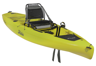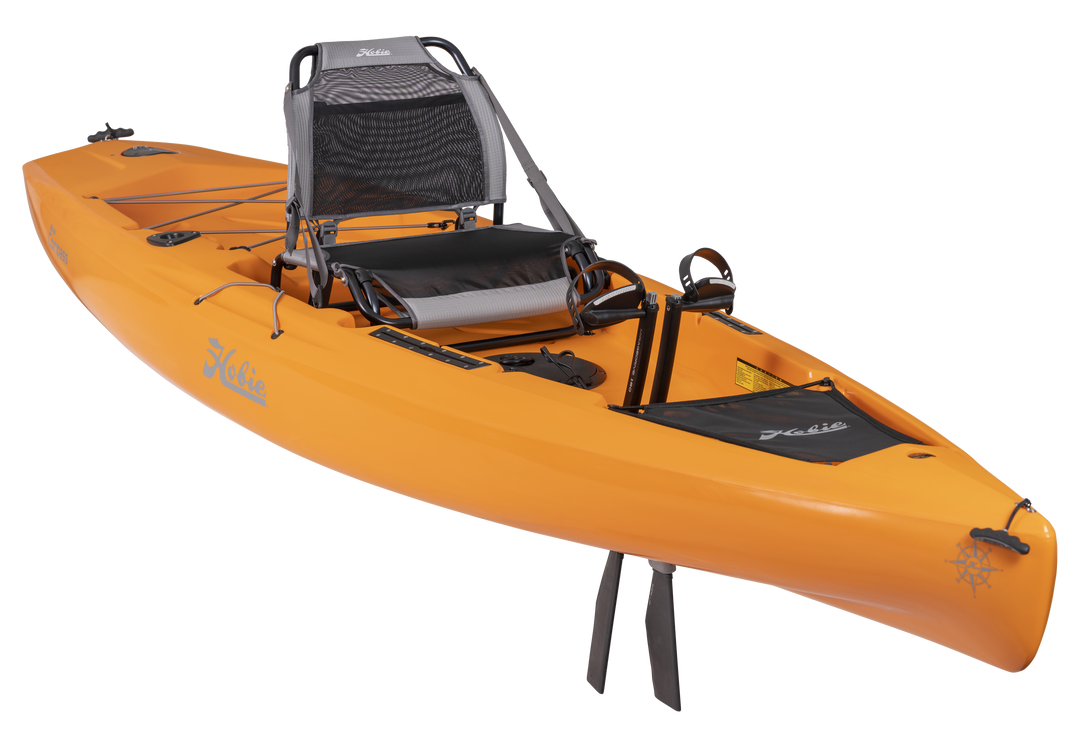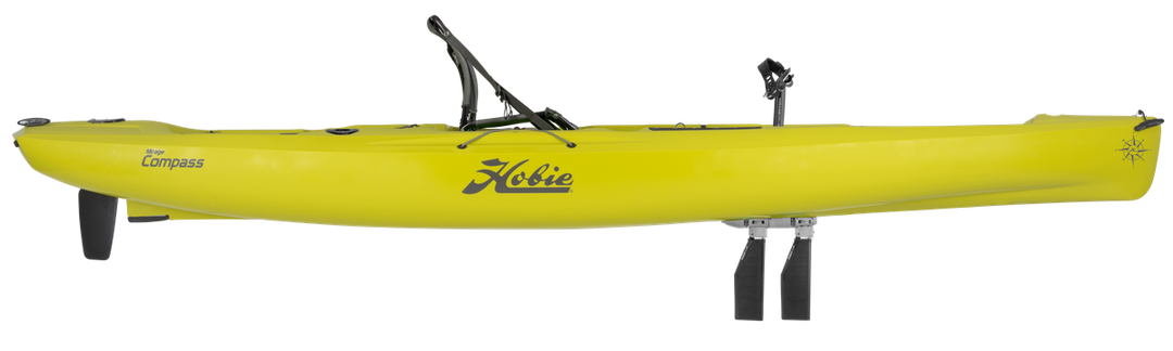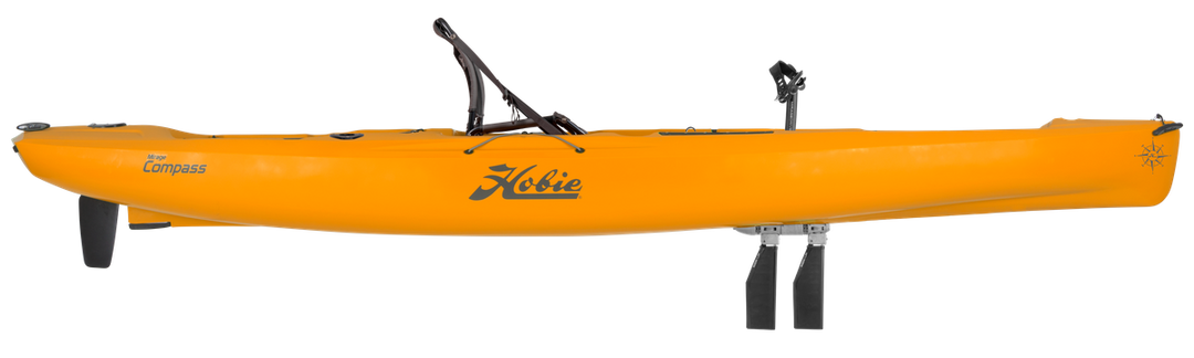 Simplicity defined, the Mirage Compass is powered by the MirageDrive 180 pedal system and Kick-Up Fins. Patented Kick-Up Fin Technology takes the worry out of kayaking in shallow, structure-filled waters by automatically retracting upon impact. Experience forward and reverse pedal propulsion with Hobie’s Square Tip Fins. New for 2022 is an anodized aluminum alloy frame seat offering incredible comfort, durability and breathability with monomesh and ripstop nylon construction. The Compass offers maximum stability and an oversized cockpit and flat deck for standing. A sharp turning radius makes this fishing kayak nimble in tight quarters, yet able to speed over open water in stealthy fashion. Kayak fishing features include pre-installed rod holders, H-Track accessory mounts and a transducer cavity ready for you to install a Lowrance® fishfinder. For a stealthy look, upgrade to the Compass Camo package that is outfitted with Kick-Up Turbo Fins and comes in Camo color.