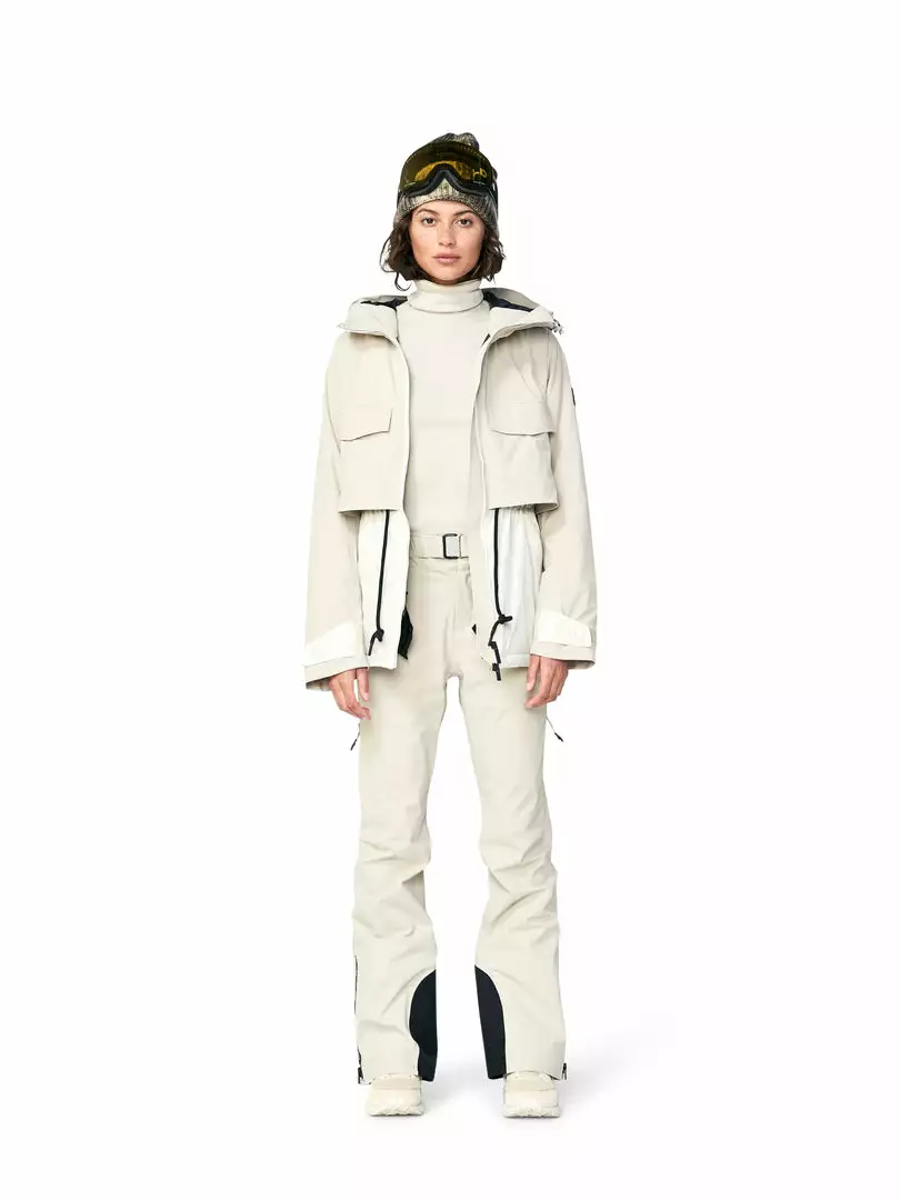 Inspired by the vintage military silhouette, with a longer cut to keep your backside warm and dry while on the mountain. Crafted with luxury waterproof/breathable materials and insulated with 100% recycled Primaloft-Eco® to keep you warm. The wider sleeve gathers in at the cuff for a modern look and ease of layering. Cinches at the waist for a feminine silhouette.