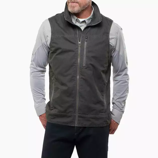 Style and comfort meet rugged durability. Made from a tough 100% cotton canvas weave that features K√úHL‚Äôs unique dye finish, the BURR‚Ñ¢¬†Men’s Vest gives you the versatility to adopt to changing weather conditions without overheating. Zippered pockets keep your valuables secure.