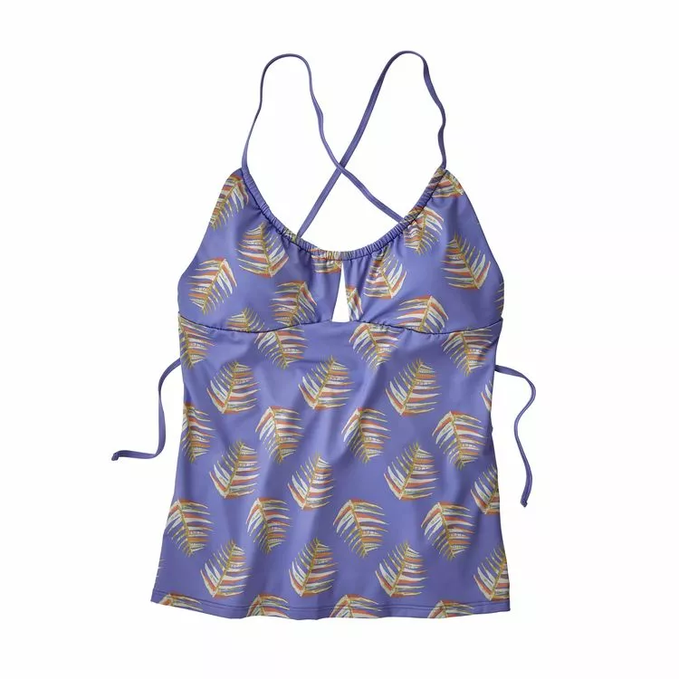Built for surfing and swimming with a feminine scoop neck and adjustable cross-back straps, this soft, stretchy and durable tankini offers increased torso coverage and pairs easily with bikini bottoms.