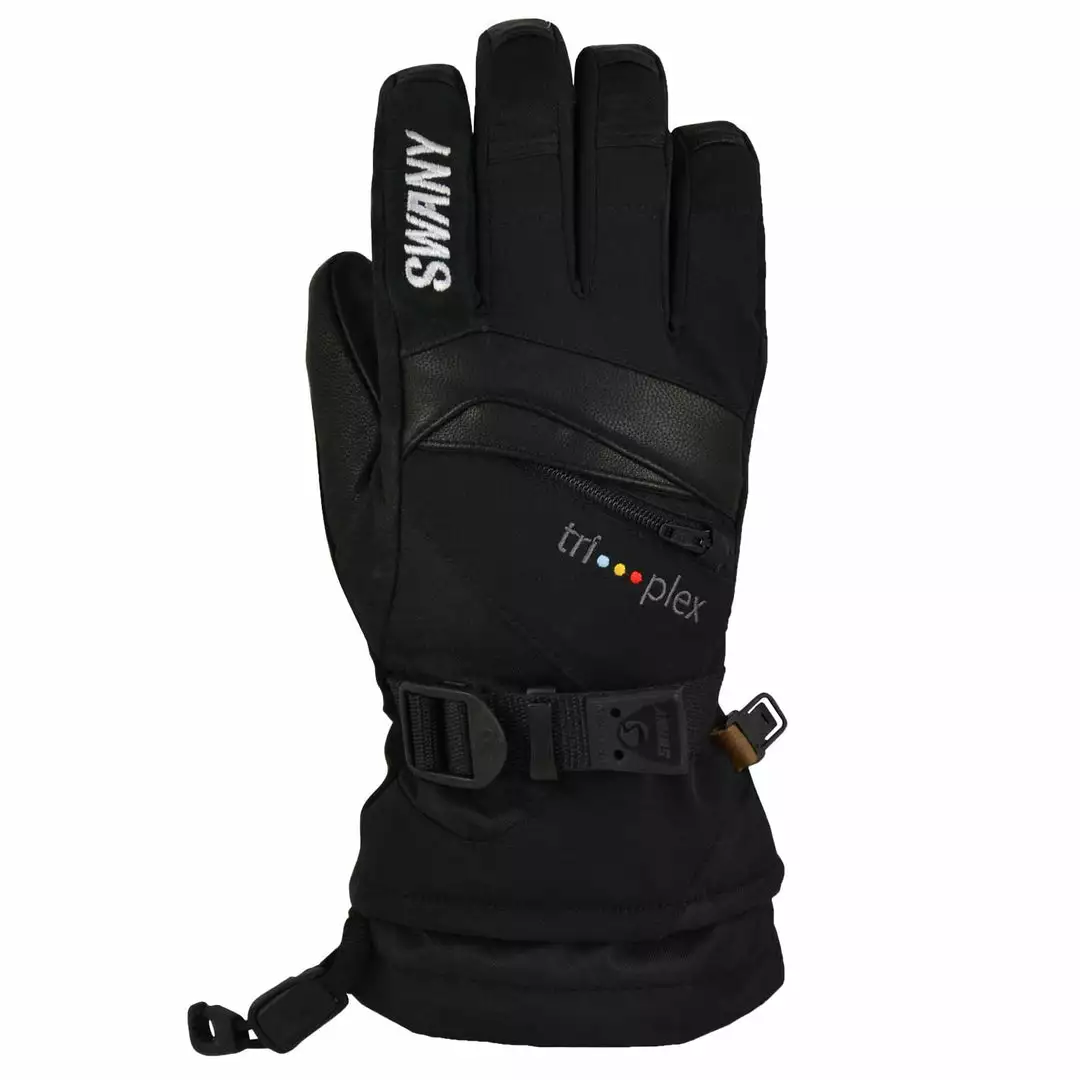 - FEATURES: Swany SpeedDraw System, Rolled Finger Construction, Utility Heat Pocket with Zipper, Quick Release Strap, Black Leash
