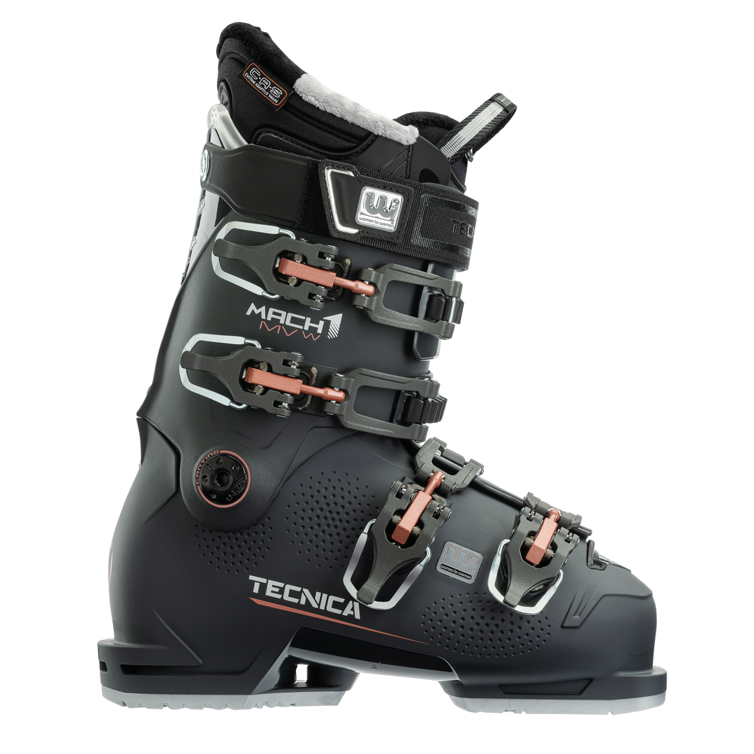 A ski boot that delivers comfort and confidence, the new Mach Sport MV 95 W is designed for intermediate-to-advanced female skiers with average-sized feet. Women’s specific features include the C.A.S. Cuff Adapt System, which quickly and easily adjusts volume around the calf to fit a variety of lower leg shapes, and the Women’s Natural Stance, which places you in a perfectly balanced position. An anatomically-shaped NFS liner offers warmth and a comfortable, secure fit. If needed, you can also add personal customization with Tecnica’s C.A.S. system to solve any additional fit problems. A moderate 95 flex strikes the sweet-spot between support and comfort, while the Double Quick-Instep and Lift-Lock buckles make for easy entry and exit. The Mach Sport MV 95 W combines the comfort needed to keep you on the mountain longer with the performance required to take your skiing to the next level.