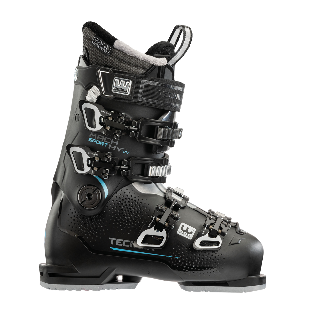 A ski boot that delivers comfort and confidence, the Mach Sport HV 85 W is designed for intermediate female skiers with high-volume feet. Women’s specific features include the C.A.S. Cuff Adapt System, which quickly and easily adjusts volume around the calf to fit a variety of lower leg shapes, and the Women’s Natural Stance, which places you in a perfectly balanced position. An anatomically-shaped NFS liner offers warmth and a comfortable, secure fit. If needed, you can also add personal customization with Tecnica’s C.A.S. system to solve any additional fit problems. An 85 flex provides painfree support, while the Double Quick-Instep and Lift-Lock buckles make for easy entry and exit. The Mach Sport HV 85 W combines the comfort needed to keep you on the mountain longer with the performance required to take your skiing to the next level