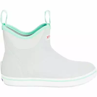 The Ankle Deck Boot collection has been crafted specifically for Off-Shore anglers. Anglers are athletes, and like any athlete they need the best footwear to help them perform at a high level. We’ve created a lightweight design with the same slip-resistant Chevron outsole found in our Legacy boots. The performance ankle deck boot is the perfect boot for any on the water athlete looking for protection with slip-on-and-go styling. This Light Gray boot features a complementary seafoam detail at the sole, pull-tabs and top lining for added style.